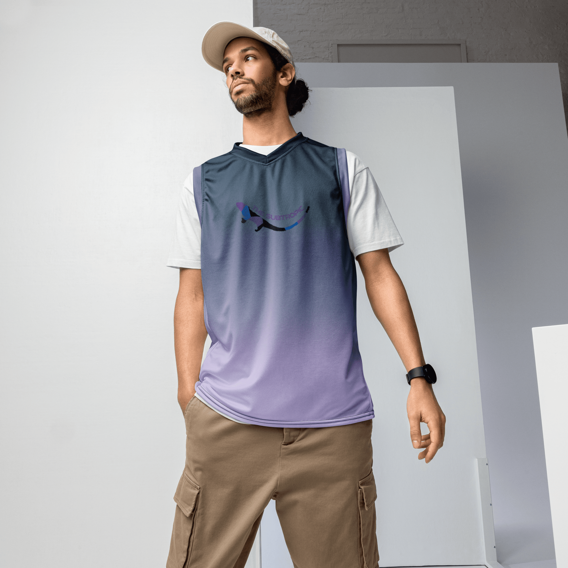 The Subtropic Basketball Jersey: Unleash your game with this eco-friendly MVP. The Subtropic Jersey is all about attitude. It's made from recycled materials, so you can ball out while saving the planet. Rocking a bold mix of purple and navy, this jersey screams style. It's built to last and keeps you comfortable during intense matches. Stand out, make a statement, and show the world that sustainability and swag go hand in hand. The Subtropic Basketball Jersey is here to take your game to the next level.