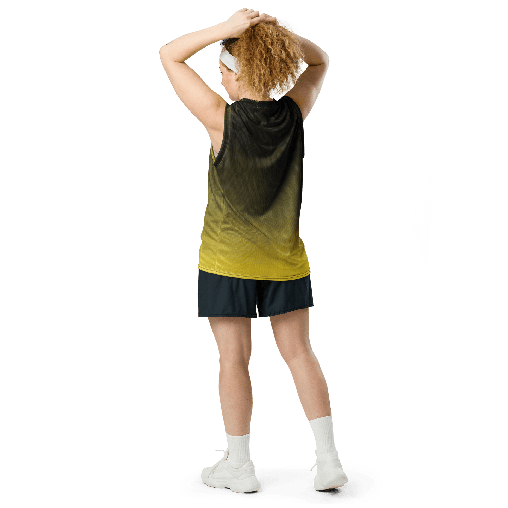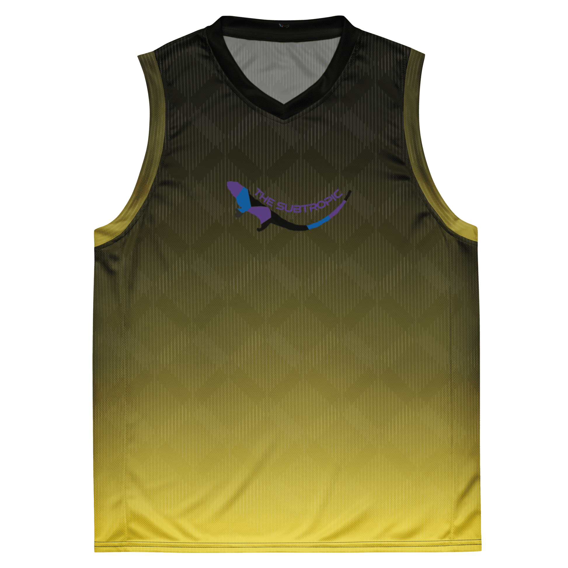 The Subtropic Basketball Jersey: Unleash your game with this eco-friendly MVP. The Subtropic Jersey is all about attitude. It's made from recycled materials, so you can ball out while saving the planet. Rocking a strong mix of yellow and black, this jersey screams style. It's built to last and keeps you comfortable during intense matches. Stand out, make a statement, and show the world that sustainability and swag go hand in hand. The Subtropic Basketball Jersey is here to take your game to the next level.