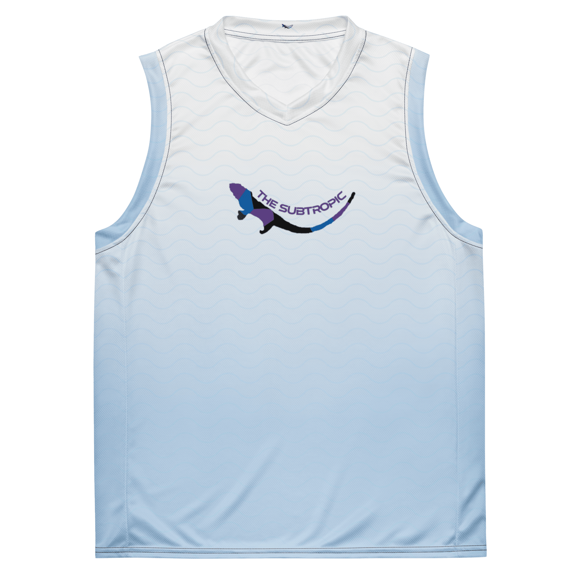 The Subtropic Basketball Jersey: Unleash your game with this eco-friendly MVP. The Subtropic Jersey is all about attitude. It's made from recycled materials, so you can ball out while saving the planet. Rocking a chill mix of blue and white, this jersey screams style. It's built to last and keeps you comfortable during intense matches. Stand out, make a statement, and show the world that sustainability and swag go hand in hand. The Subtropic Basketball Jersey is here to take your game to the next level.