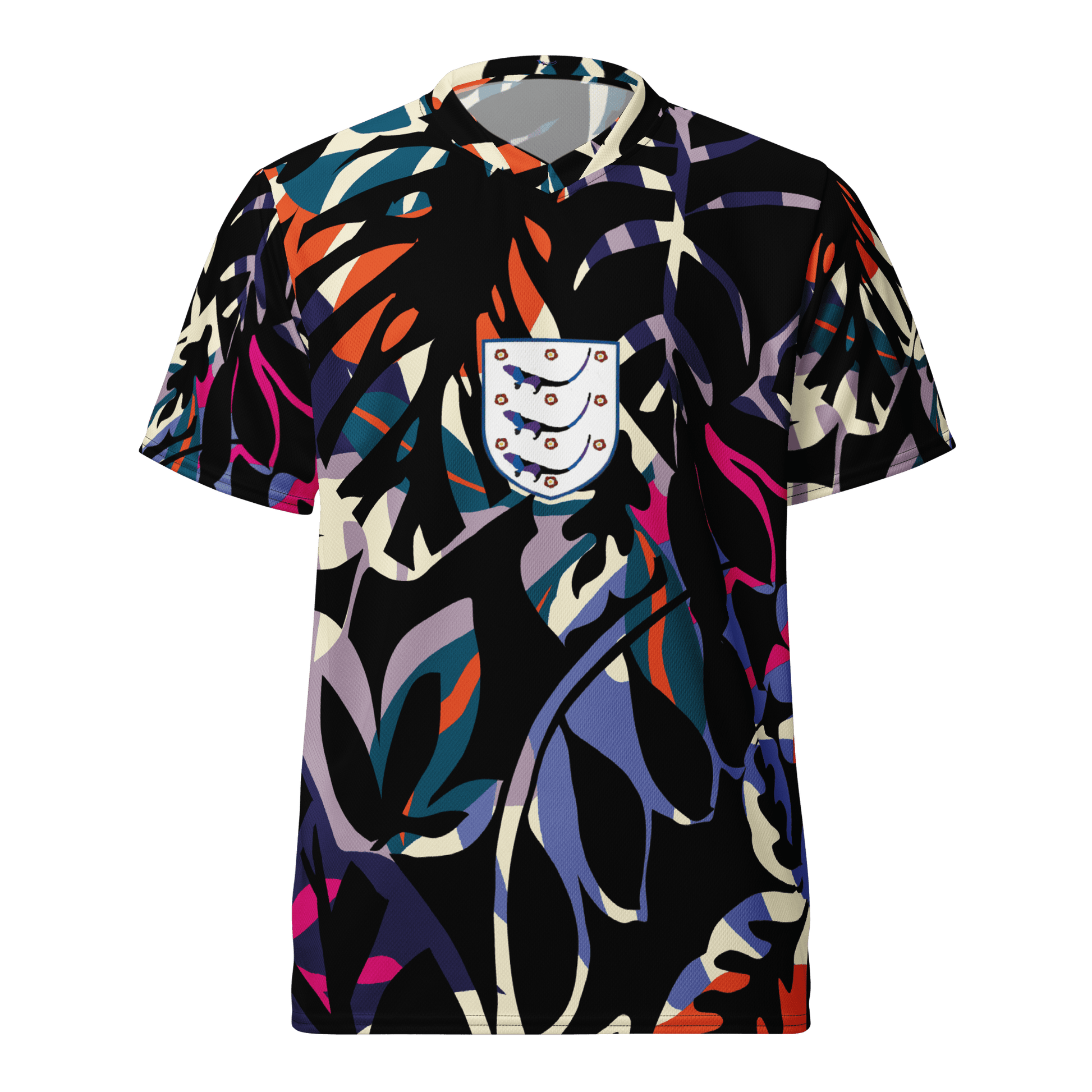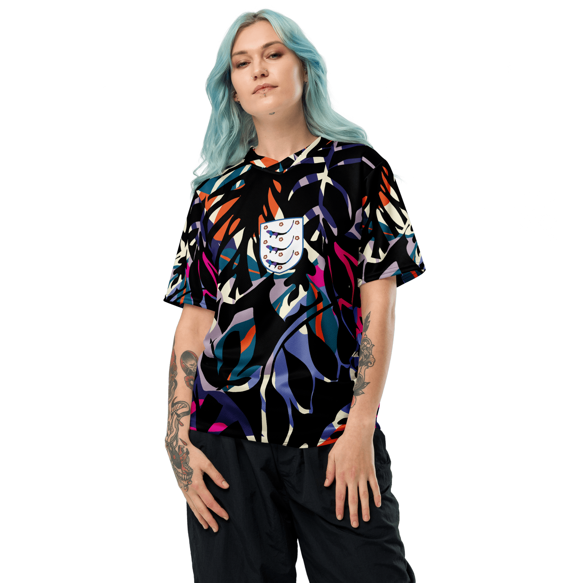 Looking for the perfect festival, rave or football jersey? We have you covered—made of 100% RECYCLED polyester fabric, this shirt is breathable, moisture-wicking, and has a double-layered v-neck collar with a unique SUBTROPIC design to keep you fresh during your five-a-side or Euro binge!
