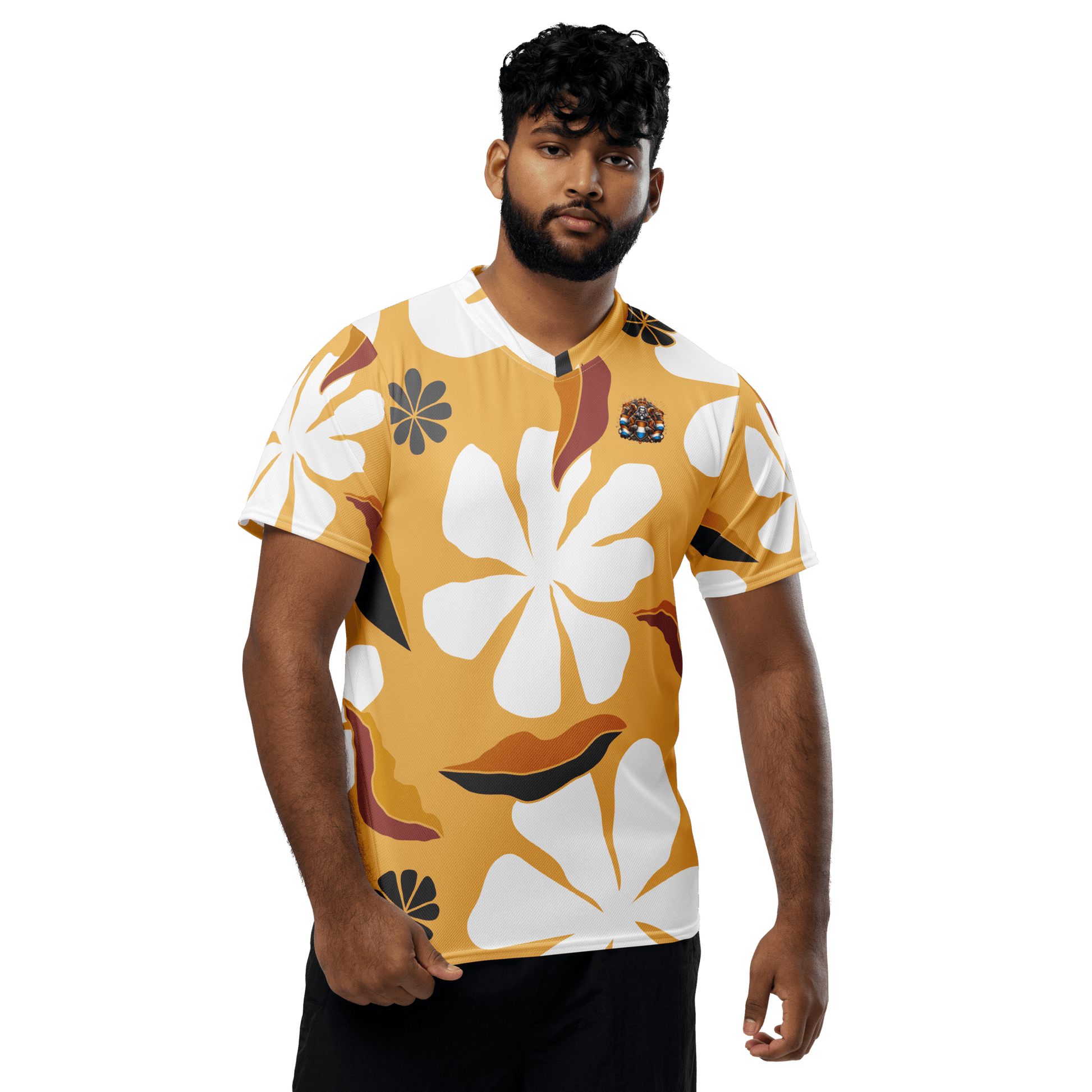 Looking for the perfect festival, rave or football jersey? We have you covered—made of 100% RECYCLED polyester fabric, this shirt is breathable, moisture-wicking, and has a double-layered v-neck collar with a unique SUBTROPIC design to keep you fresh during your five-a-side or Euro binge!