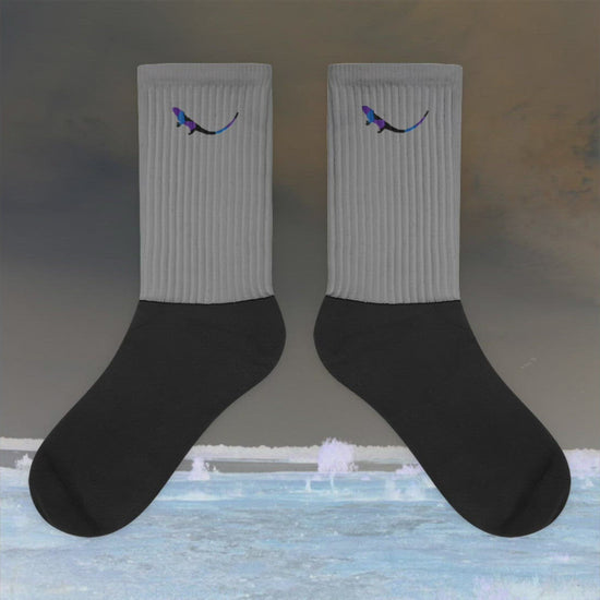 Printed in our signature logo, our cotton-blend socks are soft & breathable. Ribbed with a purple tinted tip.