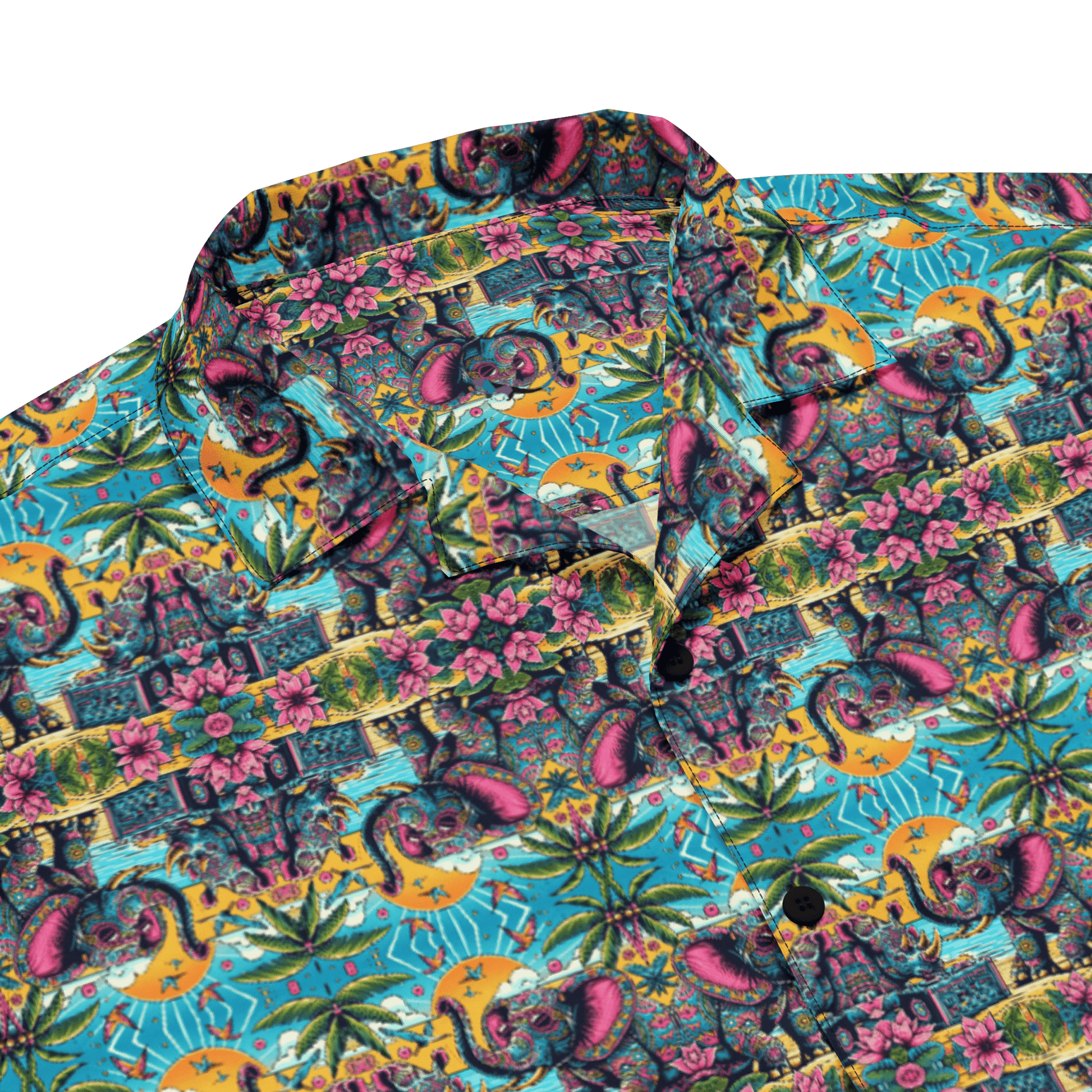 🦏🐘 Join the party with "Rhino Elephant Rave" – the newest beat in THE SUBTROPIC Hawaiian Shirts lineup! 🎉💃 Picture this: rhinos and elephants grooving under the neon Sun, creating a wild rave of tusks and horns. 🌈